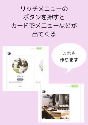 リッチメニューを押すと連動して、カードメニューが自動で出てくるというやり方のワークショップを行います
